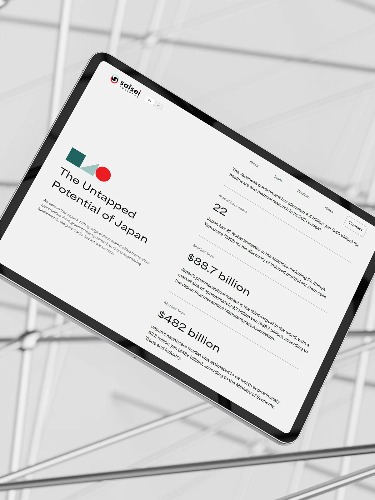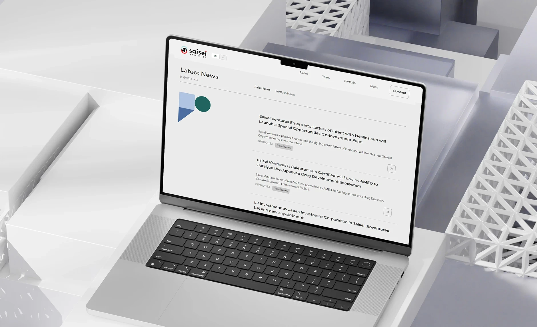 For Saisei's website redesign, we created a bilingual platform that communicated the brand's global reach while maintaining consistency across Western and Japanese markets. Our approach combined market analysis, visual design inspired by Japanese graphic designer Ikko Tanaka, and a flexible WordPress CMS for usability and performance. We identified opportunities for Saisei to differentiate itself in the bio-engineering sector through competitor analysis and minimalist geometric design.