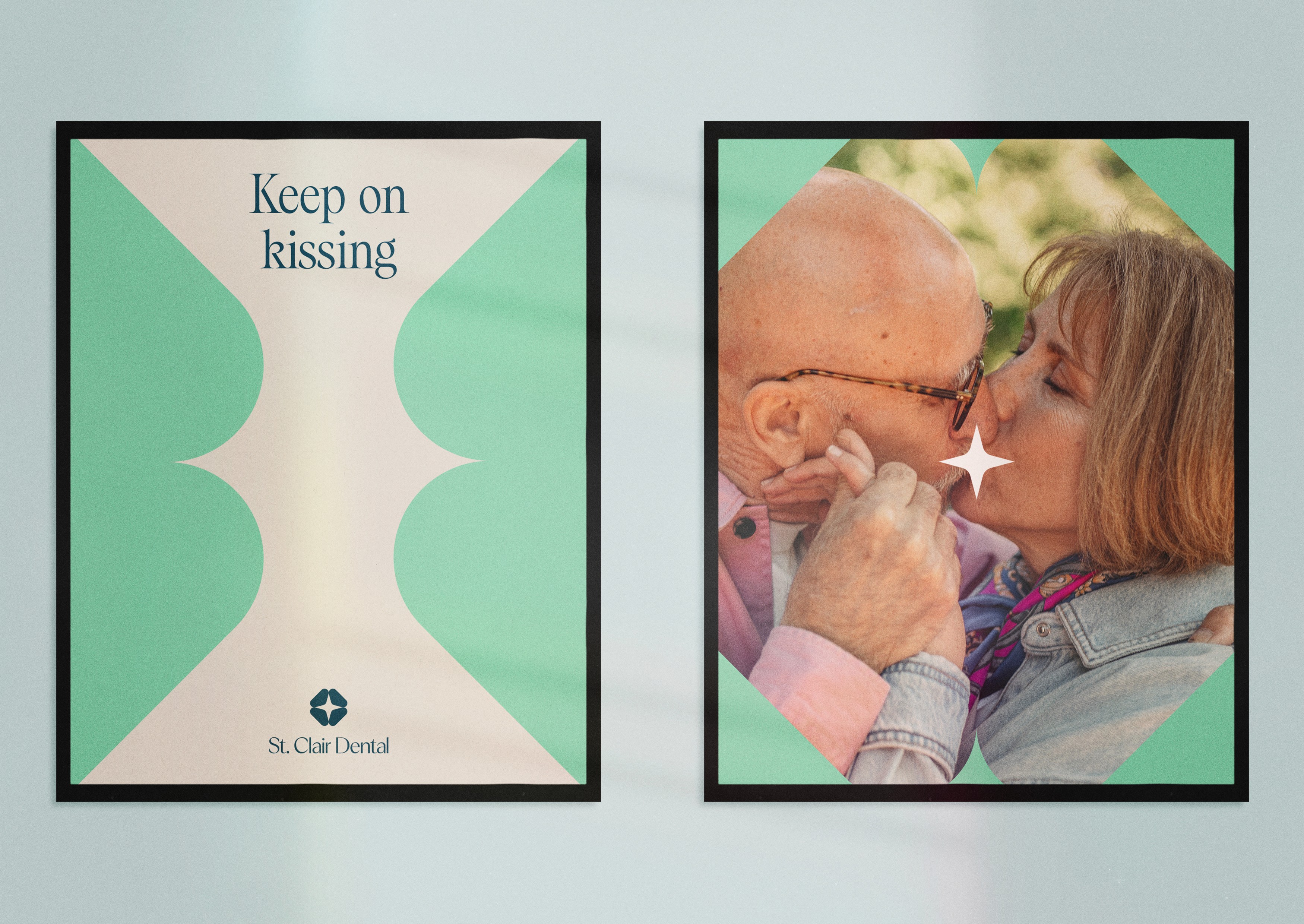 Our strategy centered on a custom molar print that served as the geometric foundation for the brand. I deconstructed this print into a versatile "sparkle" element—a modular shape that could be used independently or brought together to create a unique "kissing" effect. This dynamic visual metaphor reinforced the brand’s message of harmony and health, while the art direction featured authentic photography of their actual clientele to build immediate trust and relatability.